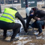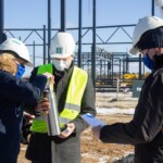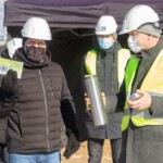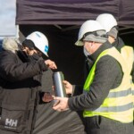 Käina kaubanduskeskuse ehitustööd jõuavad peagi poole peale ning täna, 08. märtsil 2021 paigaldati ehitaja, tellija ja järelevalve esindajate valvsa pilgu all tulevase sissepääsu juurde traditsiooniline nurgakivi.